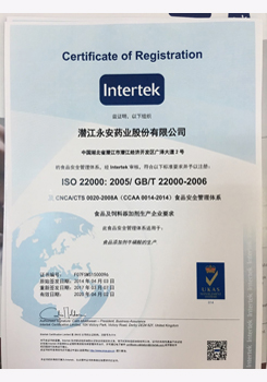 潛江永安藥業股份有限公司成立于2001年,坐落于江漢平原腹地潛江市國家高新技術產業開發區,占地500余畝,注冊資金貳億玖仟肆佰陸拾捌萬貳仟伍佰元整,是一家擁有自主知識產權的國家高新技術企業。公司股票于2010年3 月5日在深圳證券交易所掛牌上市(股票代碼為002365)。公司具有雄厚的技術開發能力,是湖北省創新型企業和湖北省知識產權建設示范企業。公司研發平臺分別被認定為省級企業技術中心和湖北省功能性食品添加劑工程技術研究中心。 經過多年的發展,公司形成了以食品及藥品添加劑?;?/p>